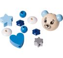 Beautiful dummy chains wooden beads "Teddy" in Blue made of beech and maple wood with a hole-Ø of approx. 2.5 - 4 mm. This 10-piece dummy necklace wooden bead set is Made in Germany.