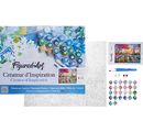 Paris, the city of love! Create with Painting by Numbers "Dinner on the Seine" a detailed work of art with a great motif from Paris with a view of the Eiffel Tower. The stretcher has a size of approx. 40 x 50 cm and is printed with numbered areas that must be colored with the appropriate colors. Each number is assigned a color, so it is clear exactly where which shade belongs.