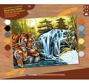 Painting by numbers "Tiger at the river" with a format of approx. 38.2 x 29.2 cm. Included are a painting template, 12 colours, 1 brush and 1 instruction