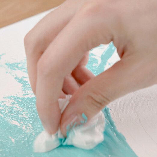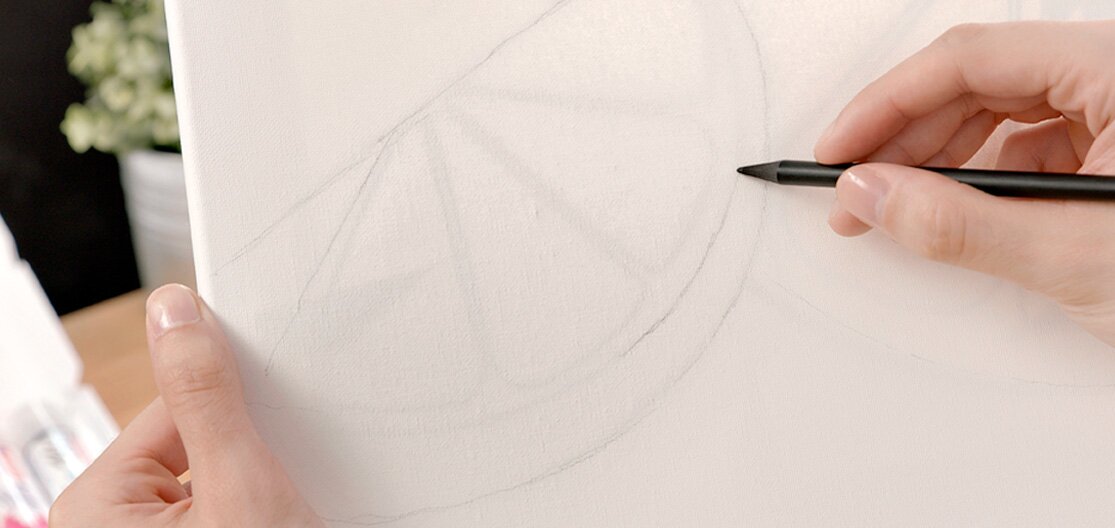 Simply place the template behind the stretcher frame. Hold it against the light so that the motif shines through the stretcher and transfer the contours with a pencil.