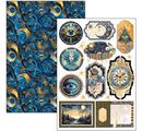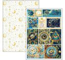 Discover the mystical world of the Paper set "Celestial", which will bathe your creative projects in a celestial light. The fascinating motifs in gold and blue, such as the sky, moon, sun, other planets, clocks, ornaments, tags and much more invite you to let your imagination run wild.
