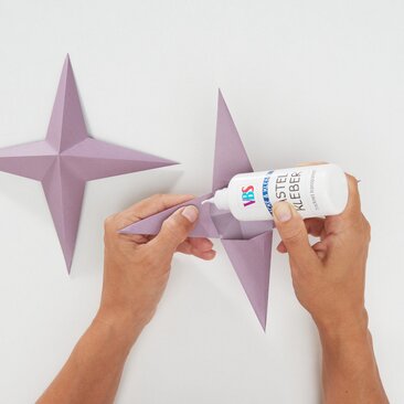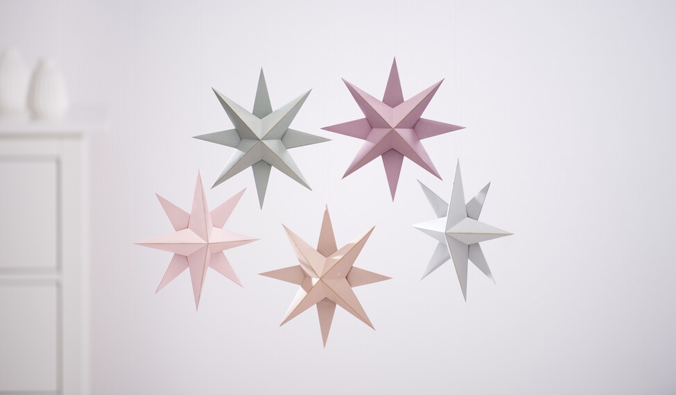 Use a sewing needle to pull a Perlon thread through one of the tips of the star. The star can now be hung up individually or in a decorative group.