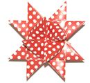 20 Paper strips in the format 5 x 130 cm in 4 Christmas designs. The finished Paper-star has a diameter of about 22 cm and is about 10 cm deep. The Paper strips are sufficient for crafting 5 Fröbelstars.