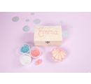 This great Pearl Clay Set is available in different colour combinations. You will receive 3 tins of 25 g with coloured Polystyrene-beads and 1 tin of 38 g with the Pearlclay Modelling clay.
