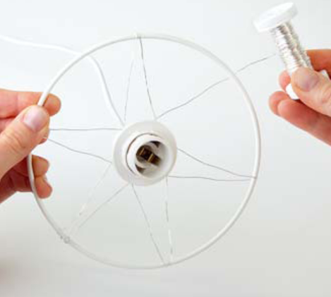 Now fix the second lamp ring 33 cm from upper edge inside the round bars.