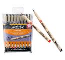 The 9-piece set Pigma brush Brush pens consists of the colours Black, Green, Purple, Blue, Rose, Dark Sepia, Red, Orange and Brown.