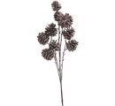 The pine cone branch "Patty" has a length of about 65 cm with cones in a size of about 4.5 cm. The plastic branch is lightly sprayed in the colour white.