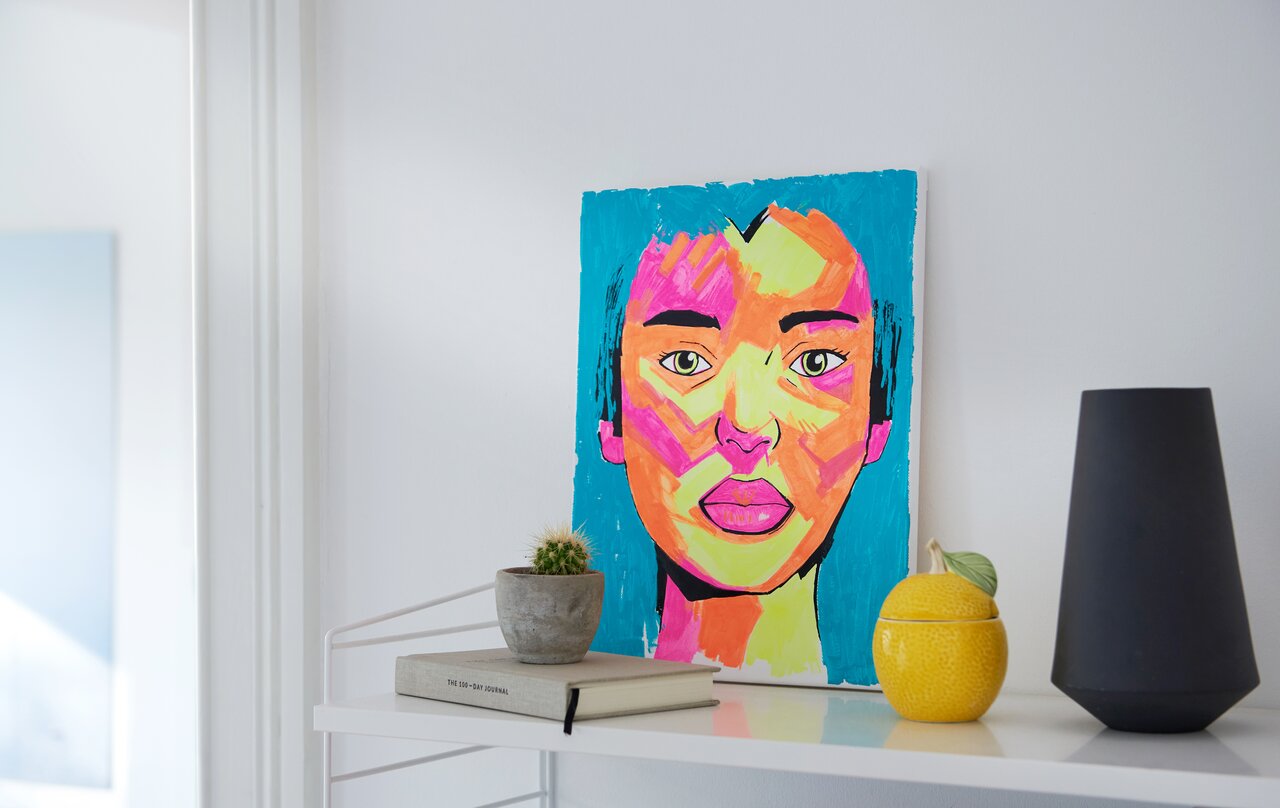 Now fill in the gaps with the neon colors you have just used until the portrait is completely painted in.