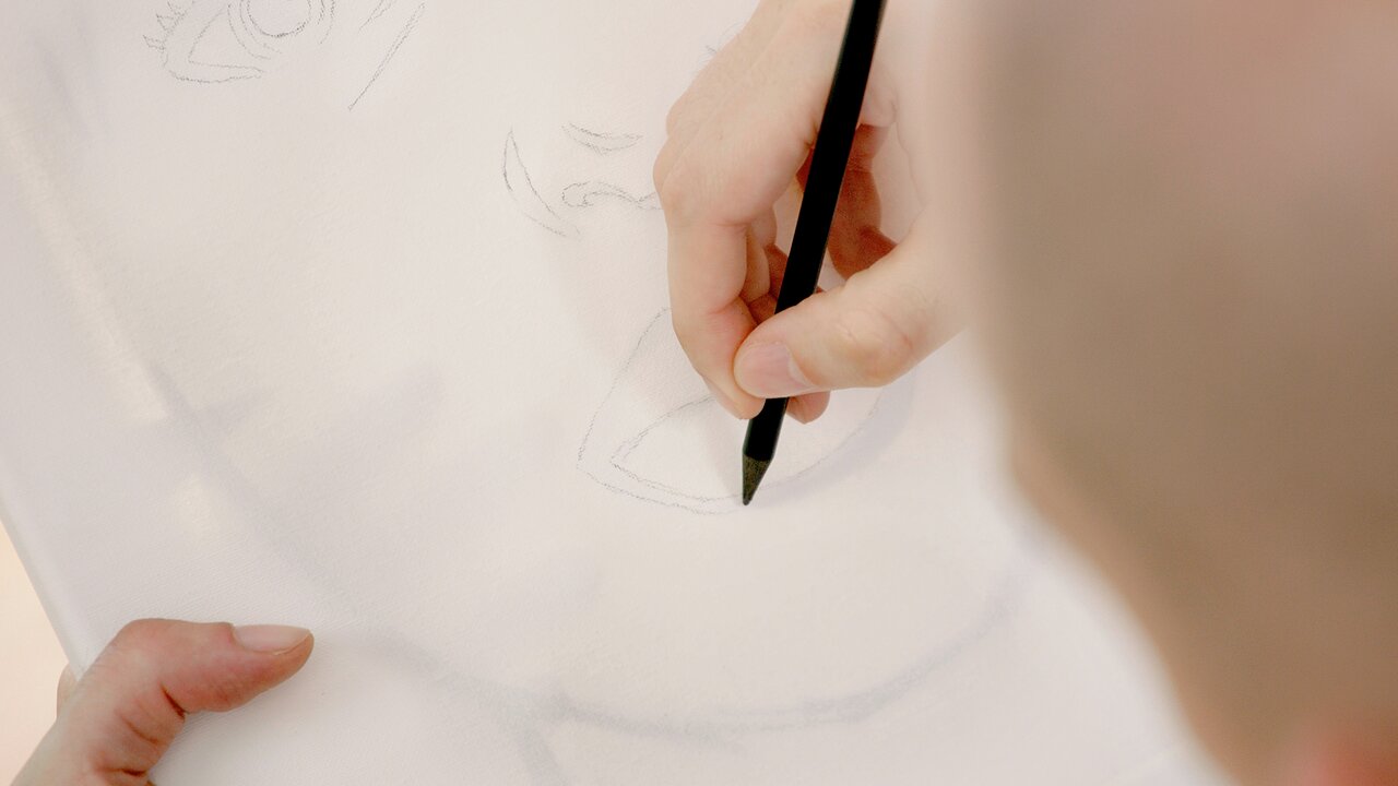 Place the motif behind the canvas and place both together in front of a light source. Then you can easily trace the template with a pencil.
