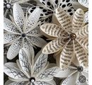 Make wonderful folded flowers out of paper with this punching template. The finished flowers have a Ø of approx. 8.5 cm. The making of the flowers succeeds everyone. At least 6 punched parts are created with the template - more can be created as desired. By the number of individual petals changes the shape and gives the opportunity to always create new flowers. With different papers always widere new design possibilities arise. So your paper flowers become unique and individual. The finished punched parts can also be stamped with motif stamps before folding. There is no limit to creativity.