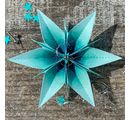 To create this folding star must be punched at least 5 punched parts. The finished punched parts are now folded and glued together. Already the star is ready and can be used as decoration for branches, gift wrappings, Christmas tree and much more. If you want to bring even more creativity into your creations, you can combine the punched parts before folding with the matching stamp set or motif stamps . This way you can make your folding stars even more individual.