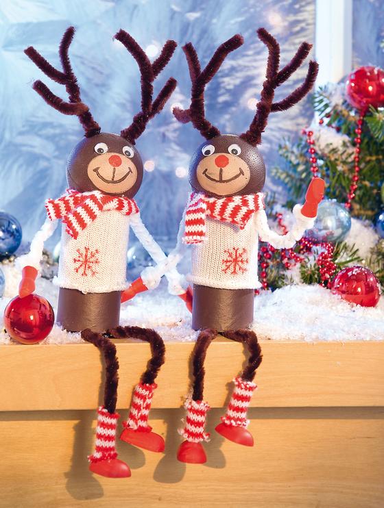 Hello, Rudi the reindeer with the red nose brought his friends! The funny figures with the swaying legs sit on your windowsill and wait together with you for from Santa Claus to come sleighing.