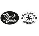 2 relief inlays in one package: "Glück am Stück" and "Gutelaune Seifchen" are oval labels made of natural rubber, which were developed especially for the personal creative.