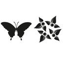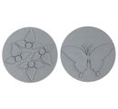 Two wonderful relief inlays as set "Butterfly, Flower" with a Ø of approx. 6 cm. The material is high-quality plastic.