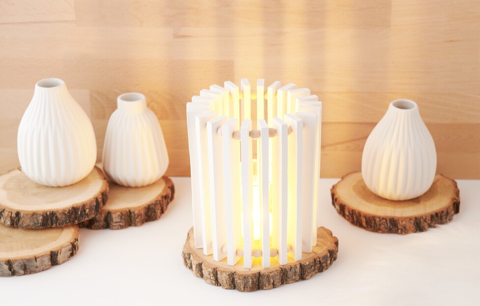 Once the wind light has dried sufficiently, you can place it on a decorative tree disc. Add a glass for tea lights and a tea light - and voilà, your homemade wind light is ready!