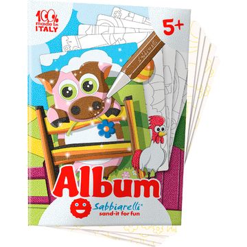 Sabbiarelli Sand-it for Fun Album Bookfriends with 15 bookmarks on 5 cards. These fun bookmarks on pre-glued and pre-cut paper are great for an afternoon of crafting with kids. The pretty motifs such as dinosaur, zebra, butterfly, giraffe, bee and others can be colorful with sand (not included). Includes instructions to facilitate the application.