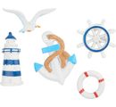Beautiful scatter decoration maritime "Sellin" made of polyresin in a set of 5. The maritime motifs like seagull, lighthouse, steering wheel, life ring and anchor have a size of approx. 2.5 x 2.5 cm to 5.3 x 4.0 cm. With these fancy scattering parts you have a variety of design possibilities for the most different handicraft projects. Excellent for decorating cards, vouchers, gift tags or scrapbook albums. The scatter decoration have a glue dot, so they can be quickly and easily attached to the project. Combined with matching ribbon and other scattering parts, a simple wooden or cardboard box becomes a high-quality Gift wrapping.