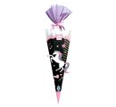 The school gift bags-craft set "Unicorn" made of 3D colour corrugated cardboard has a paper weight of approx. 260 g/m². The school gift bag has a Ø of approx. 20 cm and is approx. 68 cm high. With detailed instructions.