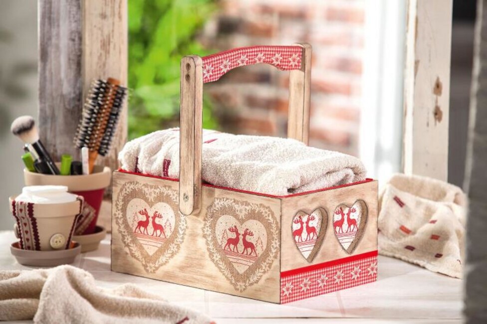 Already by its heart-shaped cutouts this wooden basket is perfectly suited for the country house look. With the matching Napkin design it becomes a piece of jewelry.