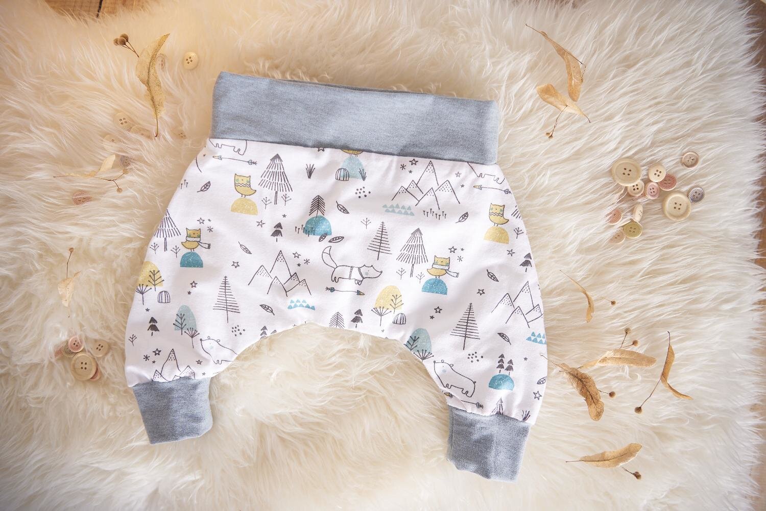 The templates for the cuffs are also inserted twice on Jersey fabric in the same procedure, recorded and cut with 1 cm seam allowance. For our baby pants we used