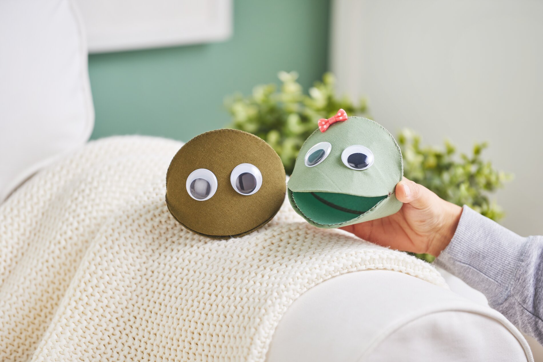 When you have finally glued on two wobbly eyes and possibly a small bow, you will have a funny frog with a mouth that you can snap open and shut!