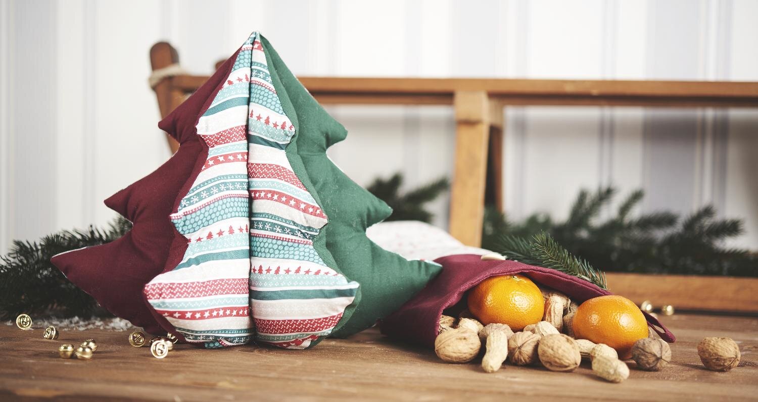 For our decoration example we used two single-coloured fabrics in red and green.