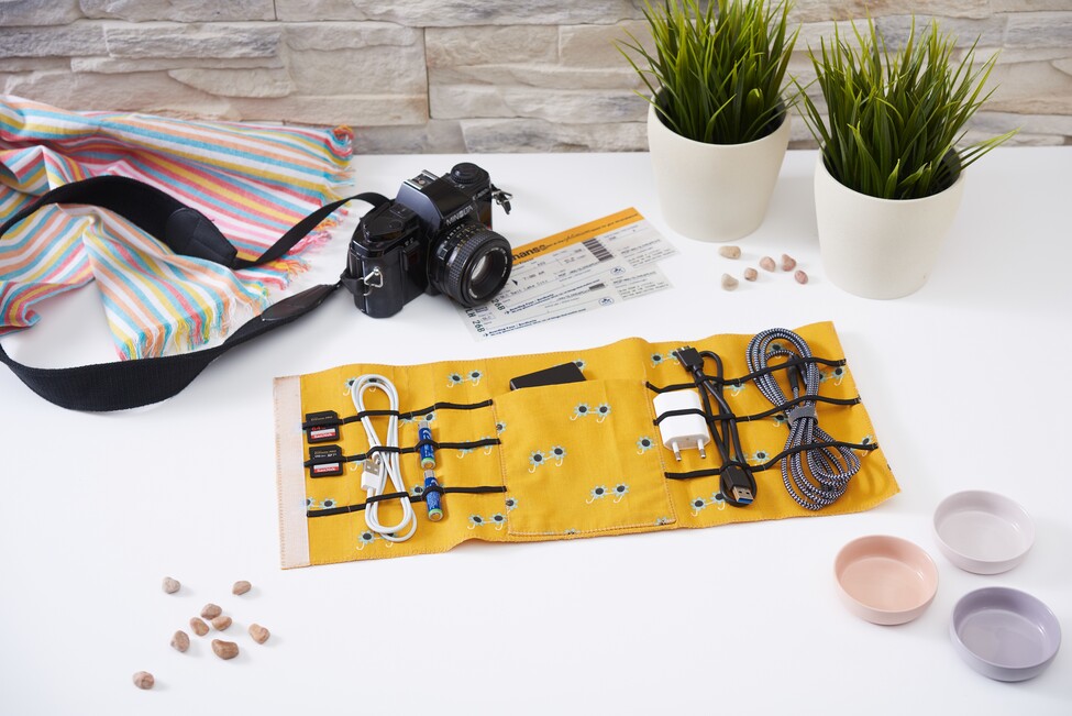 Are you looking for a practical bag for your charging cables, memory cards and spare batteries? You can sew this ingenious cable bag yourself and it has plenty of storage options. Your utensils are neatly and securely stowed away - nothing can get tangled up. Ideal for travelling and for every day!