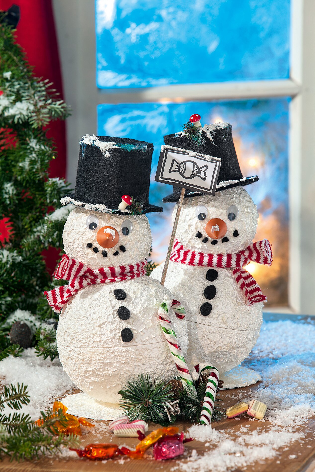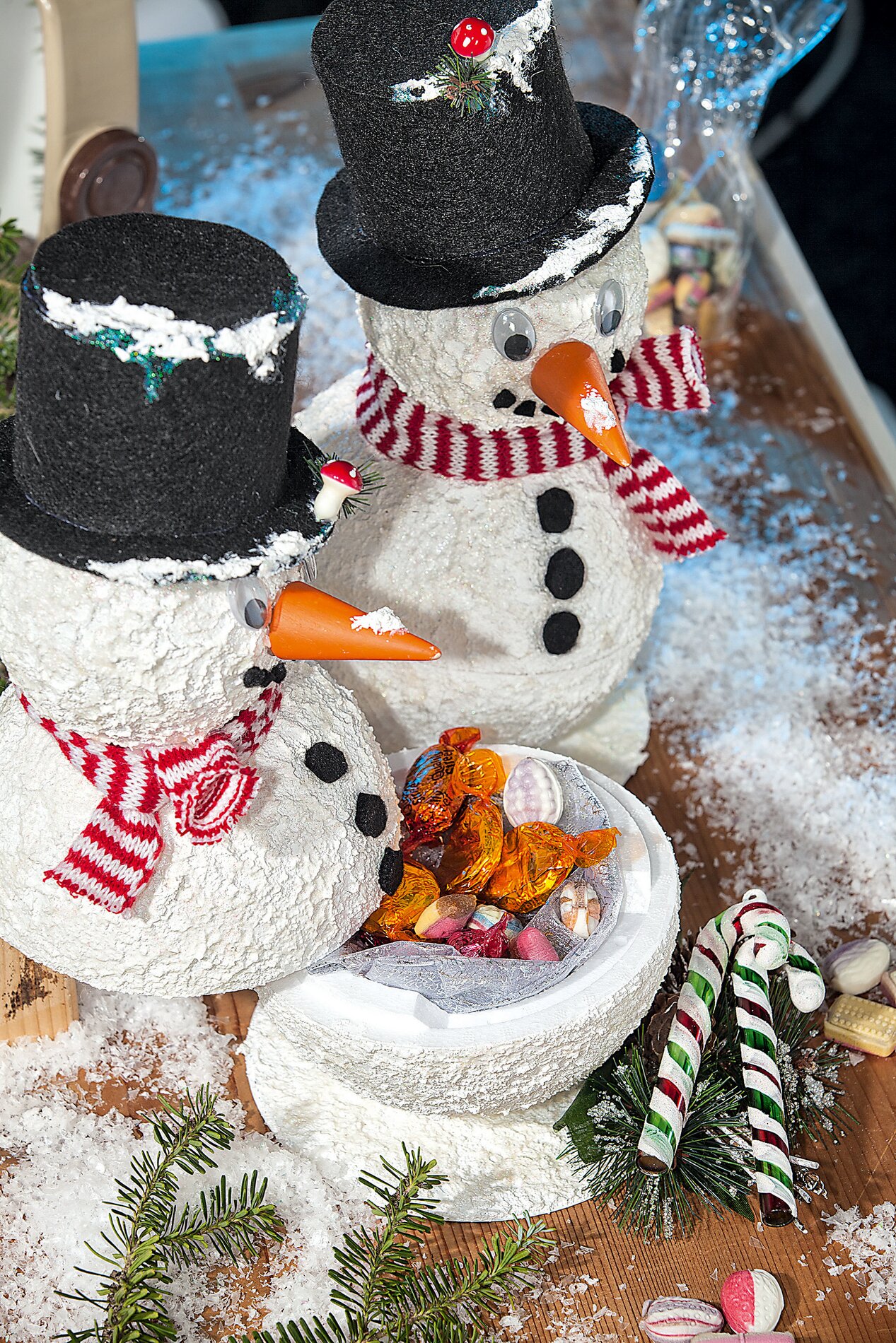 These two fellows have it in them: The big ball is divisible and has plenty of room for sweets or presents. And after the presents have been given, the snowmen will surely find a place of honour in the winter decoration of the presentee.