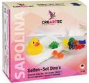 Cute Soap set "Dinos" for creative casting of own soaps in bright colors. The 4 different dinosaurs have a size of approx. 3.7 - 4.5 cm and can be made 3x each with the mold.