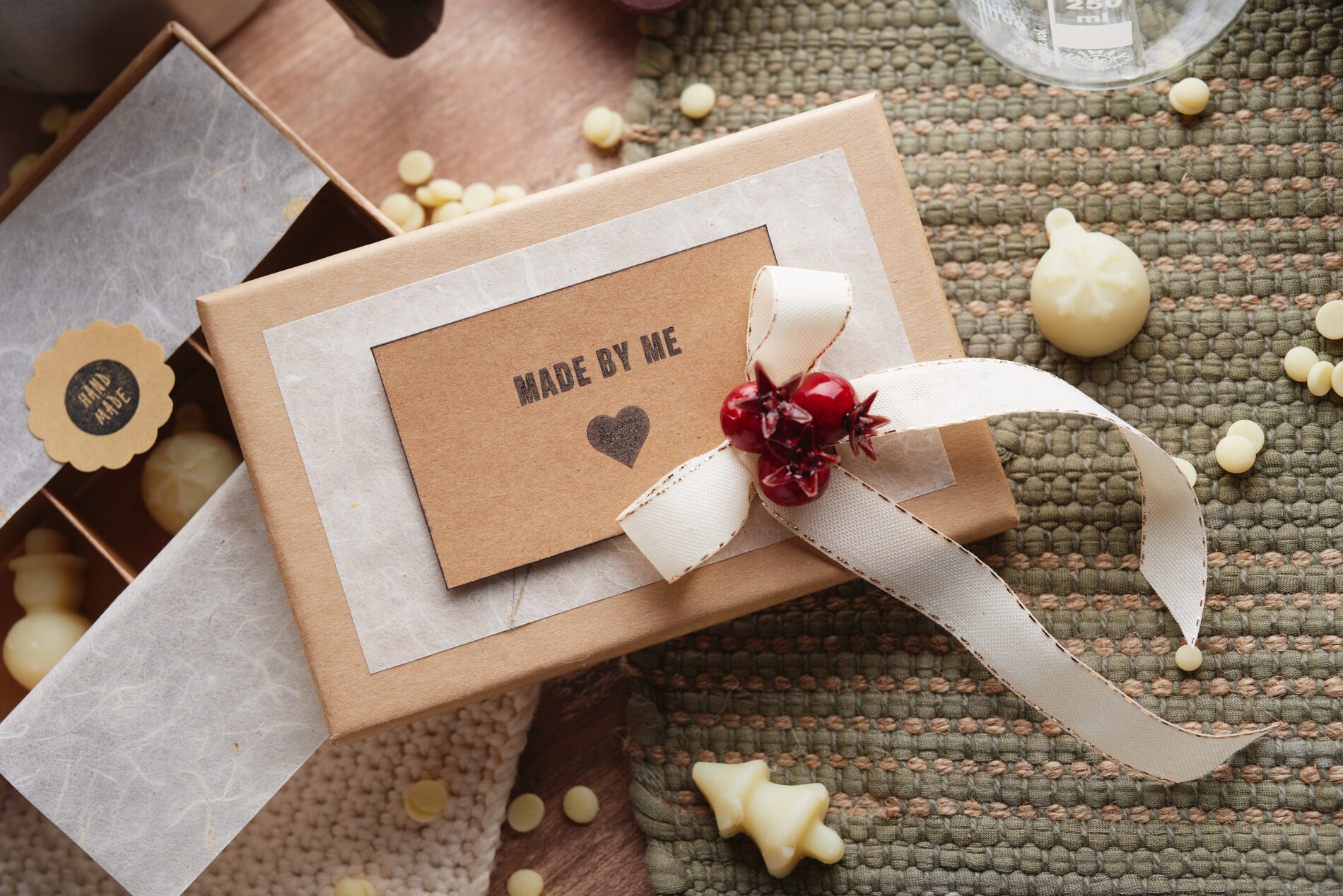 The solid hand cream is made here from natural ingredients in praline molds from Creative Kitchen. The cream helps against chapped skin and provides supple hands. A great idea, almost too good to give as a gift.