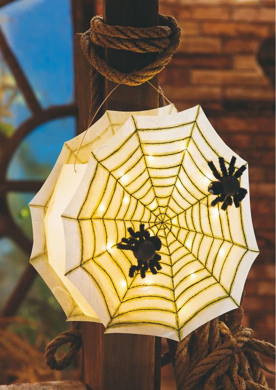 On each of the two smaller lamp foils a spider's web with a diameter of approx. 35 cm is drawn and cut out