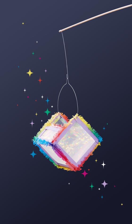 Next, poke the holes for the lantern brackets in the lantern. Apply double-sided adhesive tape to the adhesive tabs, fold and glue the lantern together.