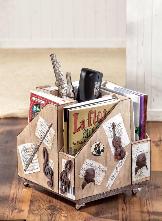 Prime the standing collectors with a Paint sponge beige primer. Then wipe a little grey-brown Handicraft paint with the dry Paint sponge over it and apply some Beige again. Wipe over the edges with the dark brown Ink Pads and emphasize in this way, wipe some stamping ink lightly over the surfaces with a kitchen towel