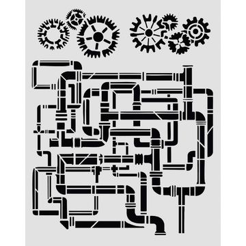Discover the fascinating world of stencil art with the Stencil "Gardens of Time - Tubes"! This versatile stencil brings industrial charm to your projects and gives your creativity free rein.