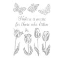 The spring-like Stencil "Nature is Music..." from the collection Garden House is a DIN A4 format with butterflies, flowers and a lettering. The motif size is between approx. 2.5 - 15.0 cm. This is a wafer-thin stencil that is ideally fixed with adhesive spray to prevent slipping.