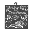 The dreamy Stencil "Rose perfume" with a size of approx. 18 x 18 cm and a thickness of approx. 0.25 mm comes from the eponymous collection Rose Parfum and is printed with playful roses and a lettering. The smallest rose is about 4.2 cm tall and the largest ornament is about 16.5 cm long.