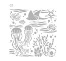 Fish, jellyfish, rays, sea shells and corals can be stenciled on a wide variety of surfaces. So you can easily create tiles, stretched canvas, scrapbook work, paper designs and mixed media designs. Scatter decorations, pendants, motif straw silk papers and lasercut motifs are a fitting addition. Use the stencil to transform your creative work into an underwater paradise.