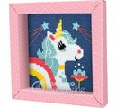A pretty frame made of sturdy paper sets the finished embroidery picture with a cute unicorn great in scene. A super decoration for the nursery. Also great as a gift idea for little embroidery lovers.