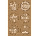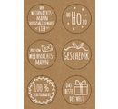 Self-adhesive stickers "Christmas mail" with a diameter of approx. 4.8 cm. In the package there are 24 stickers with brown background and white writing and decoration.