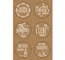 Stick these beautiful festive stickers on small glass vessels, cookie bags or gifts. Or use the stickers for card designs, for example, Advent Calendar and Gift tags. The stickers work especially well on darker surfaces. The funny sayings will put a smile on the face of every presentee.