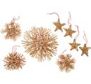 A wonderful straw stars assortment with 16 straw stars in size from 4 to 10 cm. The material is straw. Bound are the pretty stars and the hanger with a red yarn.