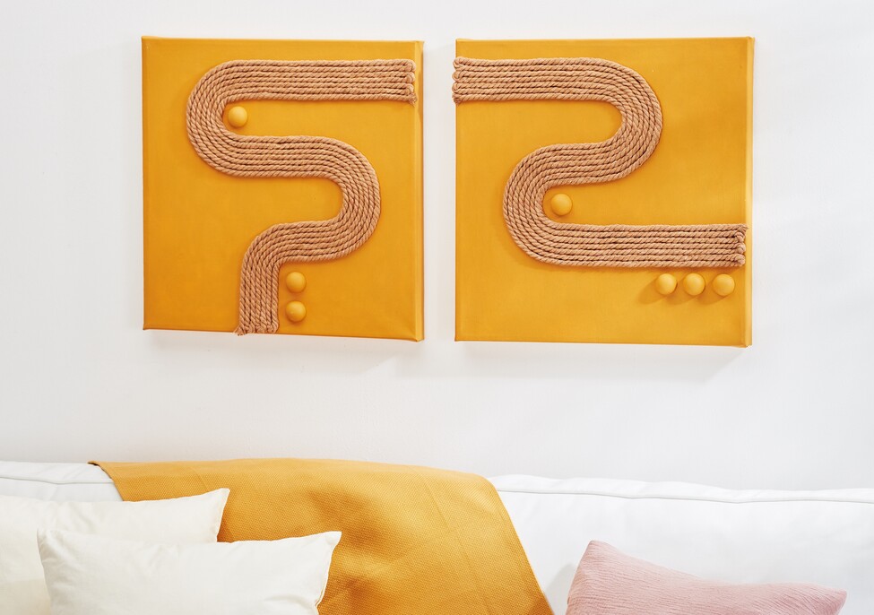 Step-by-step instructions for a textured picture with macramé cord on stretched canvas