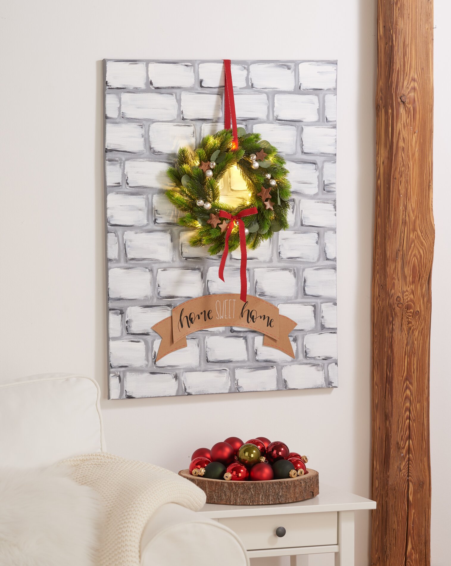 Decorate your wall for Christmas with this beautiful decoration idea of a stretcher frame and a fir wreath. The wall look with the wreath makes this look modern and contemporary.