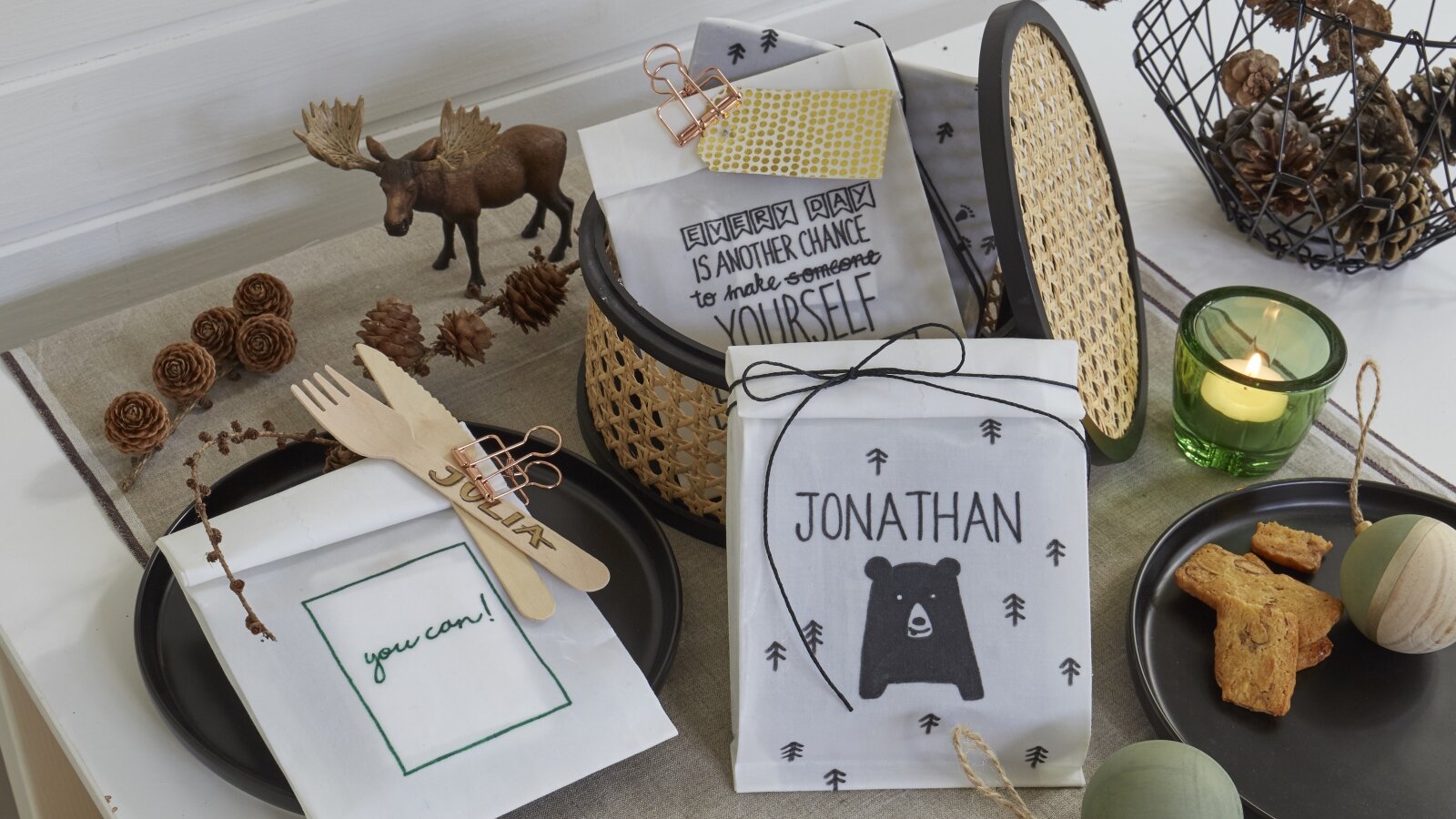 When it comes to giving gifts, it's not only the content that counts. Loving packaging makes presents real eye-catchers and shows creativity and ingenuity. The idea shown here is not only beautiful and imaginative, but also sustainable. You can make wonderfully cute gift bags from waxed fabric that can be used again and again. Before waxing, paint the fabric individually with edding textile pens. The textile markers and pens are perfect for light-coloured cotton fabrics. There is a choice of 20 shades in two line widths including neon colours for particularly bright motifs.