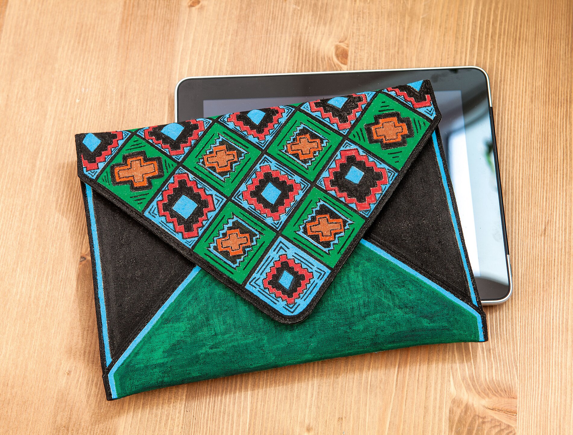 Allow the finished bag to dry, then apply permanent iron-on film and iron on the colours at cotton temperature .