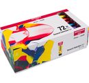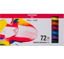 The XXL Talens AMSTERDAM acrylic paint set "All in" consists of 70 colours of the standard series and 2 tubes of titanium white with a filling quantity of 20 ml each. The opacity of the colours in this set ranges from transparent to opaque.