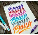 The most diverse colour intensities are achieved by diluting with water or with the help of the Brush Pen Dazzler . Brilliant colours and best results are obtained when painting or drawing on light or white drawing or Watercolour paper. The colours dry in a very short time, not waterproof. By slightly moistening the already applied paint, a new treatment or continuation of the work is possible.