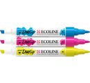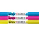Talens Ecoline Duotip "Primary color set" with 3 colors as a basic set with which to start your collection. Included are the colors 205 lemon yellow, 337 magenta and 578 sky blue (cyan). Brilliant colors based on dye and gum arabic. The pens are equipped with 2 different tips, a narrow ball tip and a wider wedge tip. This gives you the freedom to draw fine and wide lines or color larger areas.