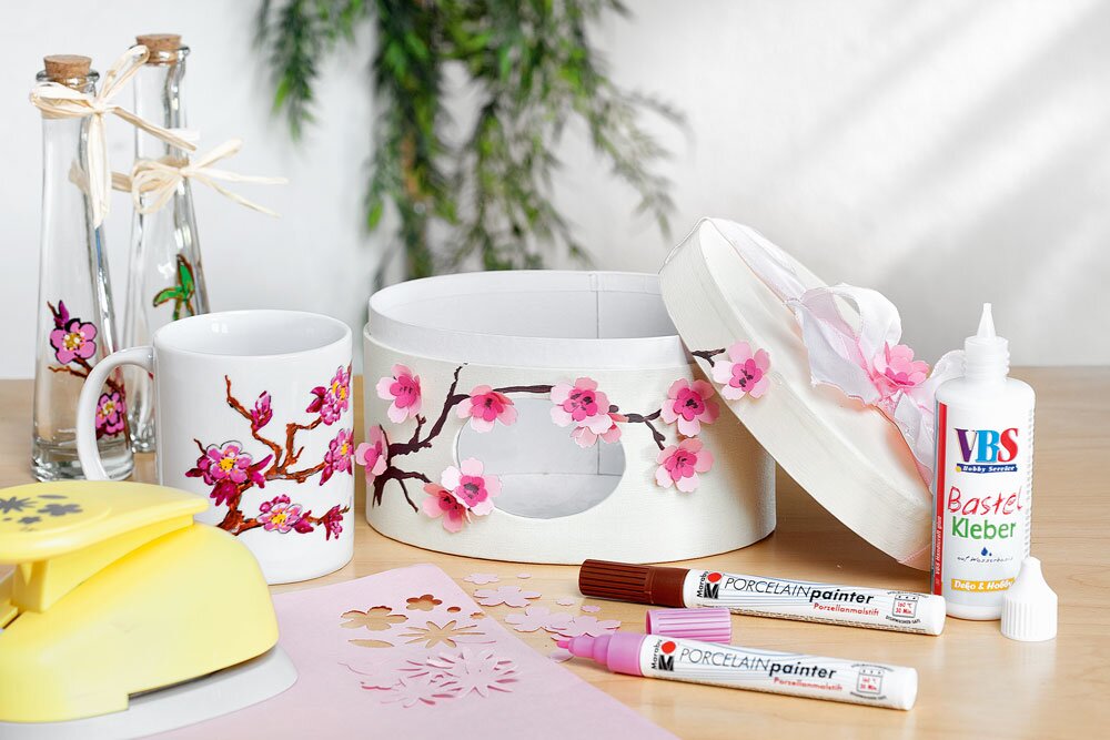 Tasse und Geschenkschachtel im Kirschblüten-Design