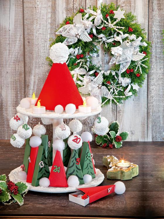 Fix the Advent calendar numbers on the boxes and balls with hot glue